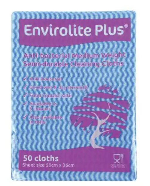 Envirolite Plus Folded Antibacterial Medium Weight Cloths are food contact safe which makes them a superb choice for kitchens and food preparation areas. They have excellent wet strength for high performance in demanding situations.