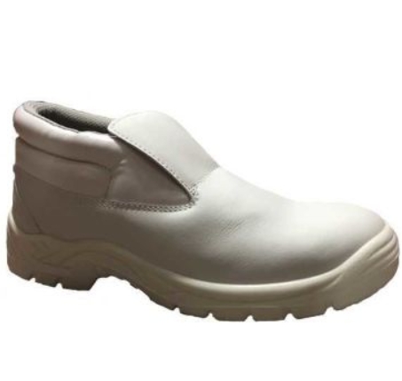 A white, value padded ankle cuff boot, with a water resistant, breathable, microfibre synthetic upper. It is antistatic, has an energy absorbing heel & steel midsole, making it both comfortable & hardwearing. Conforms to EN ISO 20345:2011.