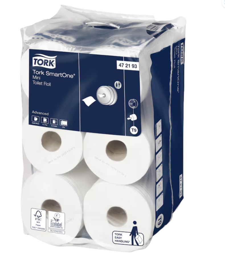 The Tork SmartOne Mini Toilet Roll System uniquely delivers one hygienic sheet at a time, helping to reduce consumption by up to 40% compared to traditional jumbo roll dispensers, which means more visits per roll. Tork SmartOne Mini high-capacity rolls are suitable for